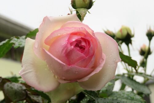 お題「わたしの癒やし」 昨日は雨も、今日は曇りのち晴れ。 昨日は、終日小雨が絶え間なく降り続いていた。まさに、「五月雨(さみだれ)」(注1)か? 今日は、久しぶりに晴れ出した。 そんな「五月雨」の中、昨日、バラの「ピエール・ド・ロンサール」が…