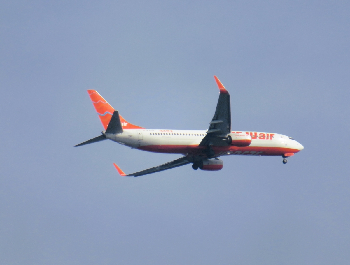 このJALのエクスプレス機が飛んで来る前は、これもカラフルな「チェジュ機」を目撃していた。